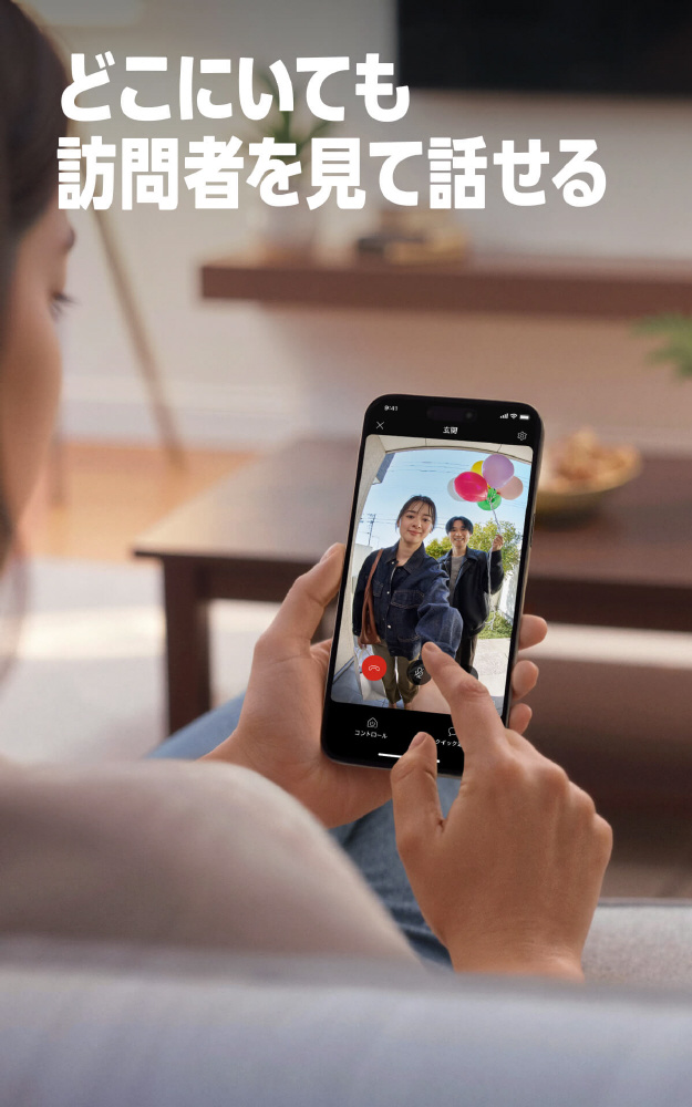 モーション検知・リアルタイム通知・ライブ映像・双方向音声により、チャイムが鳴る前から玄関先の人や状況を把握でき、スマートフォンやタブレット、Alexa搭載のEchoデバイス、Fire TVシリーズを使ってどこからでも応答できます。