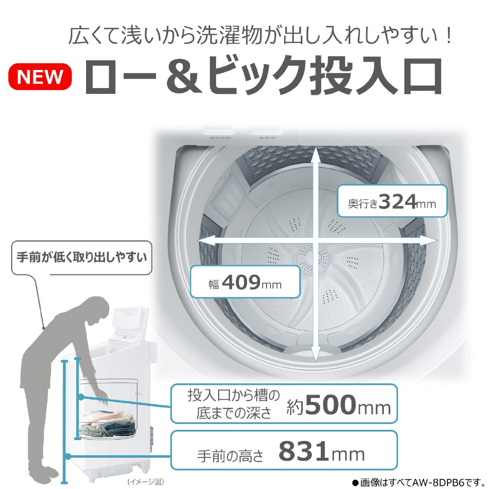 | 商品名 | 全自動洗濯機 ZABOON グランホワイト AW-8DHB6(W) [洗濯8.0kg /簡易乾燥(送風機能) /上開き] |