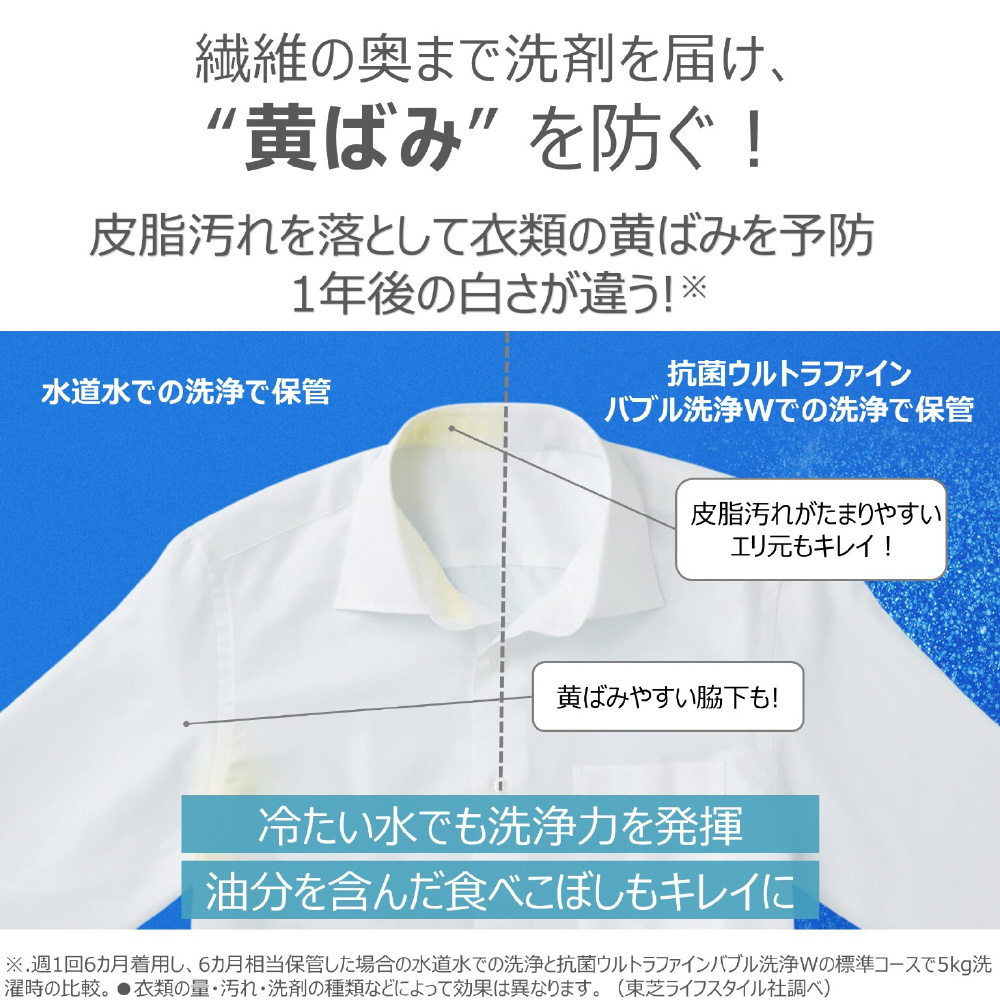 ウルトラファイルバブル洗浄W搭載、驚異の泡で、1年後の白さが違う。さらに洗うたびに抗菌。毎日のことだから、使いやすさにこだわった「気配り設計」。