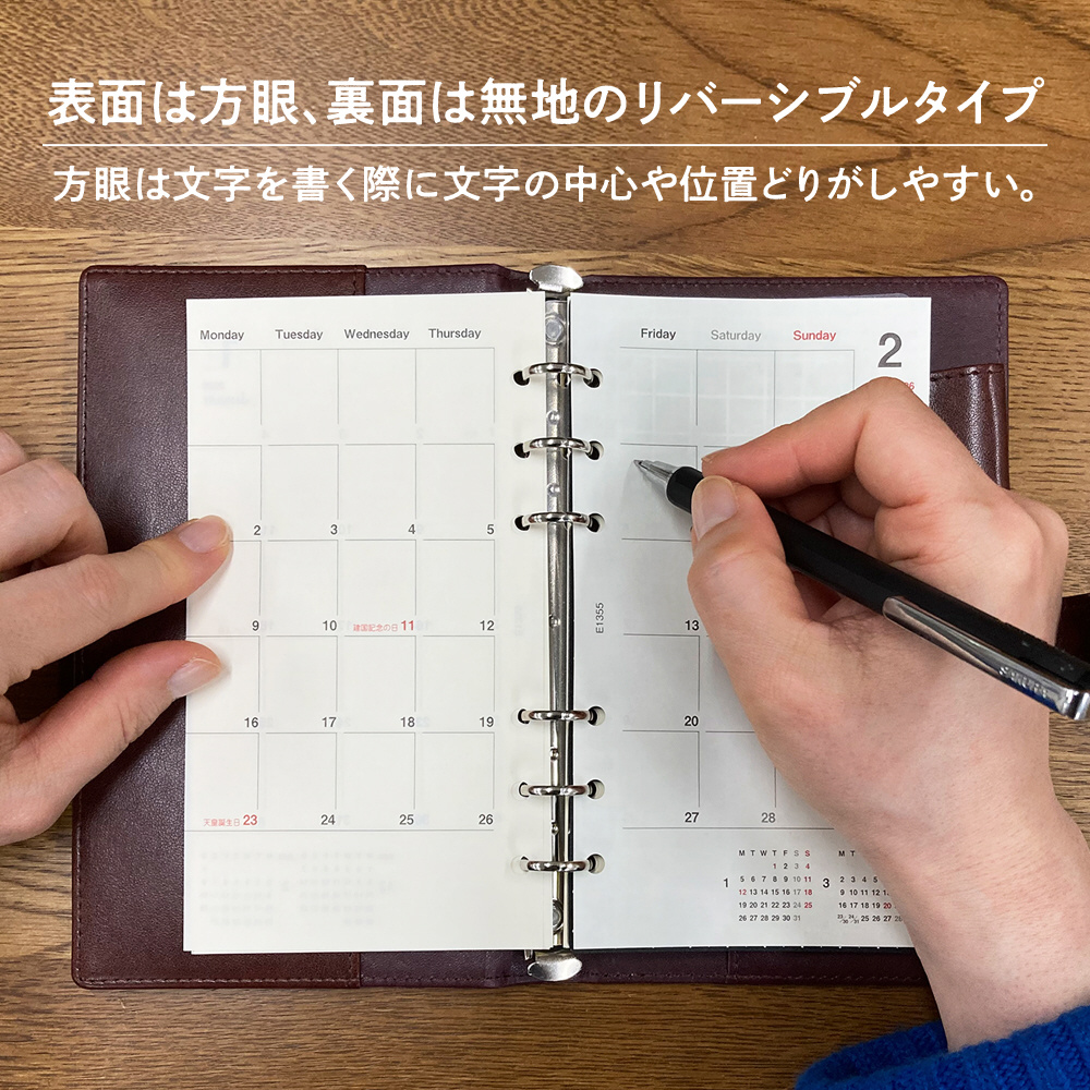 ●方眼が印刷されていることで手帳に文字を書く際に文字の中心や位置どりがしやすいです。