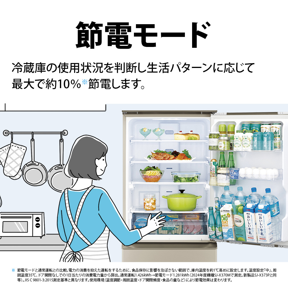 冷蔵庫 マットシャンパン SJ-X373P-N [60cm /374L /3ドア /左右開きタイプ]【生産完了品】【基本設置料金セット】