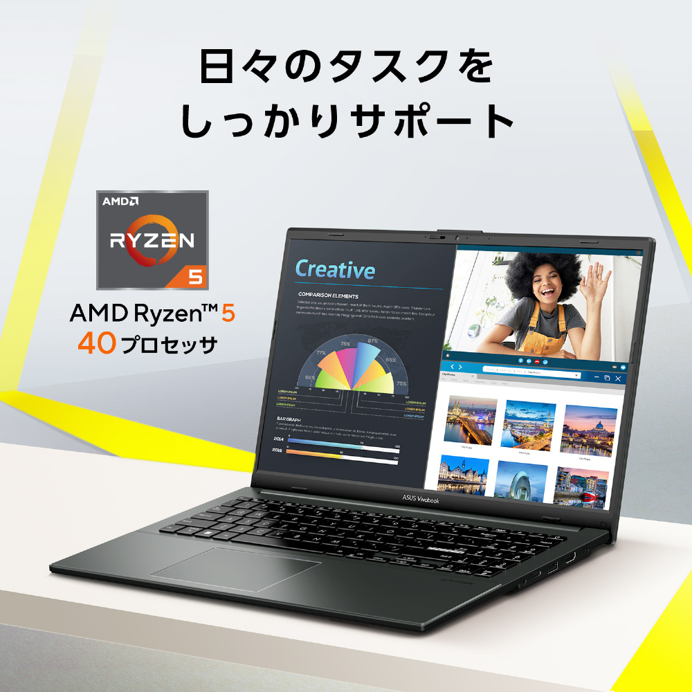 AMD Ryzen 5 40プロセッサを搭載。また、高速通信規格 Wi-Fi 6Eにも対応し、インターネット接続がより高速でストレスなく行えます。