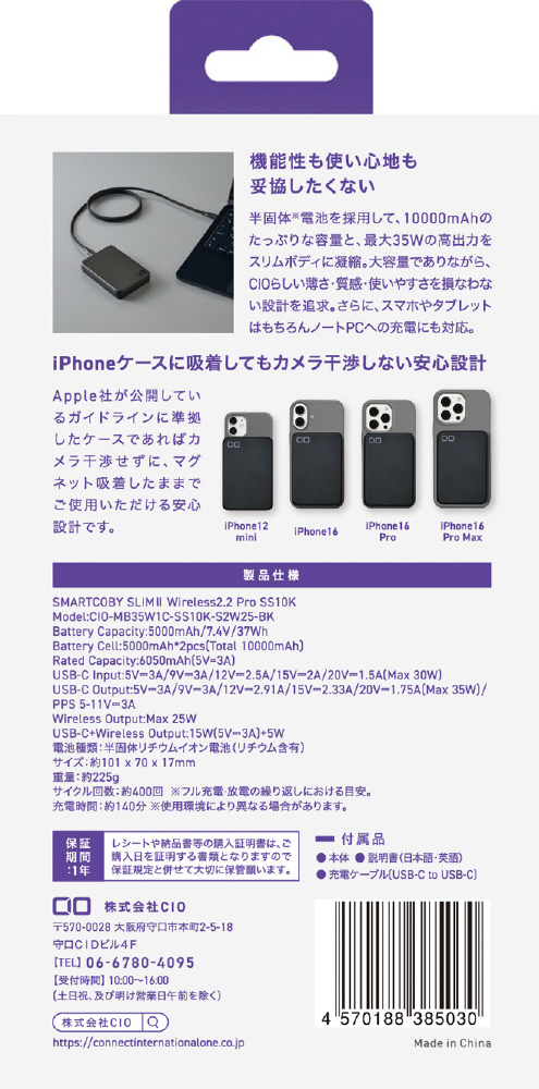 極限まで薄く設計された10.000mAhの大容量バッテリーを積んだワイヤレス対応モデル。