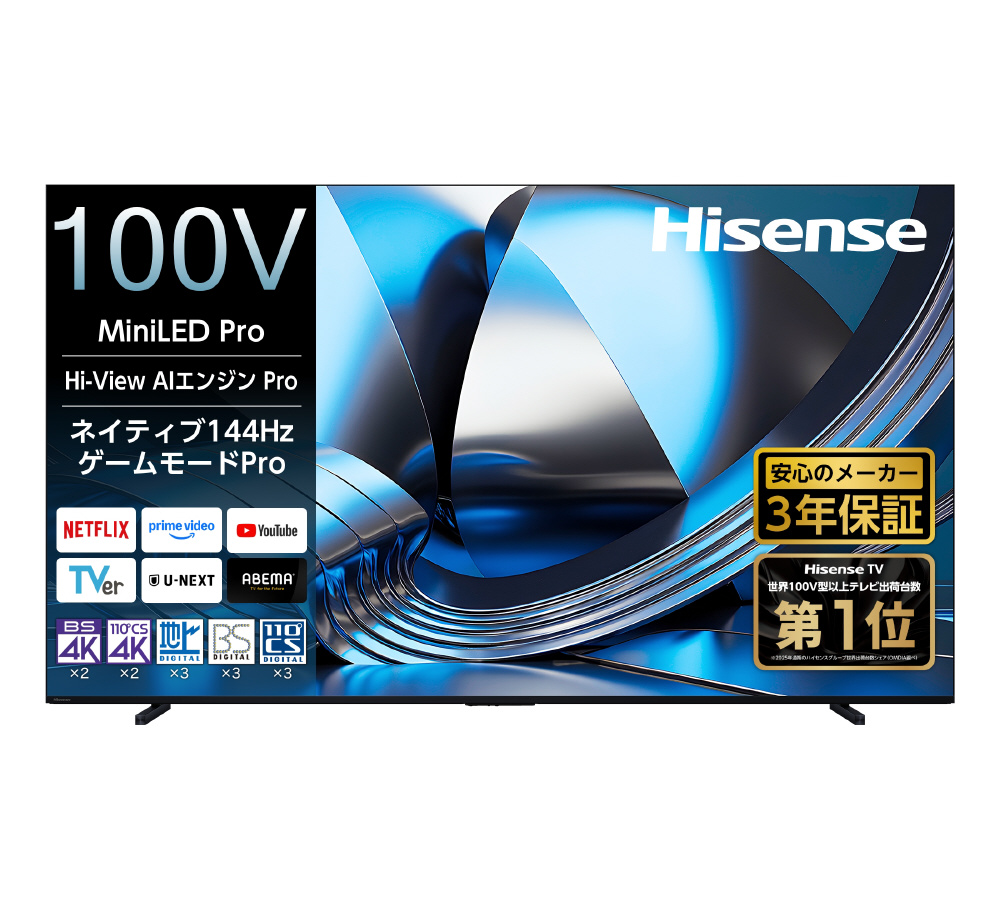 液晶テレビ ハイセンス 100U7S [100V型 /Bluetooth対応 /4K対応 /BS・CS 4Kチューナー内蔵 /YouTube対応] 【要事前見積】