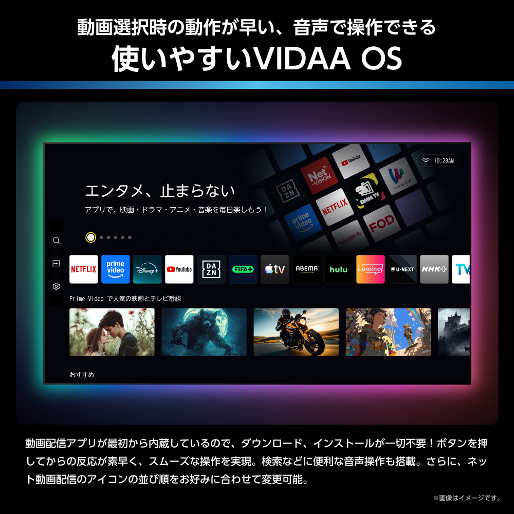 ●動画選択時の動作が早い、音声で操作できる使いやすい「VIDAA OS」