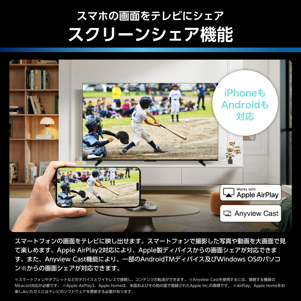 付属品 取扱説書、Bluetooth/赤外線リモコン、単四形乾電池×2、電源コード、転倒防止用ひも1式、スタンド1式