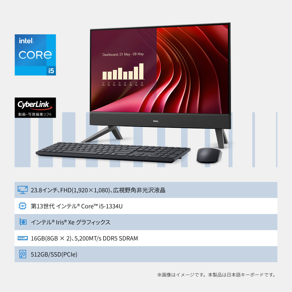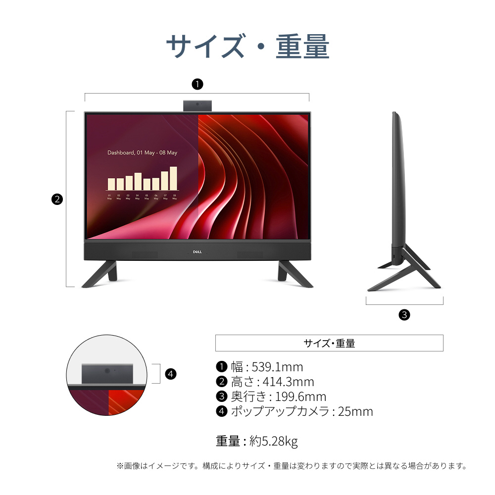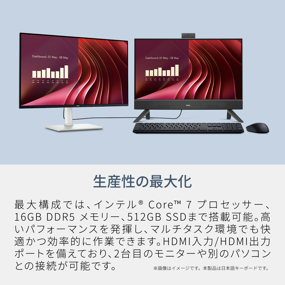 AD47-GHM3BC モニター一体型デスクトップPC Dell 24(EC24250) ダークシャドウグレー [23.8型 /Windows11 Home /intel Core i5 /メモリ:16GB /SSD:512GB /M365 (24か月) or Office 選択可能 /2026年春モデル]