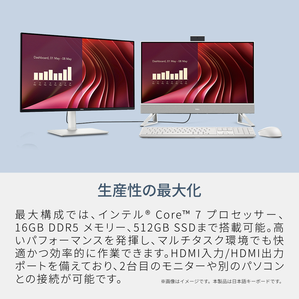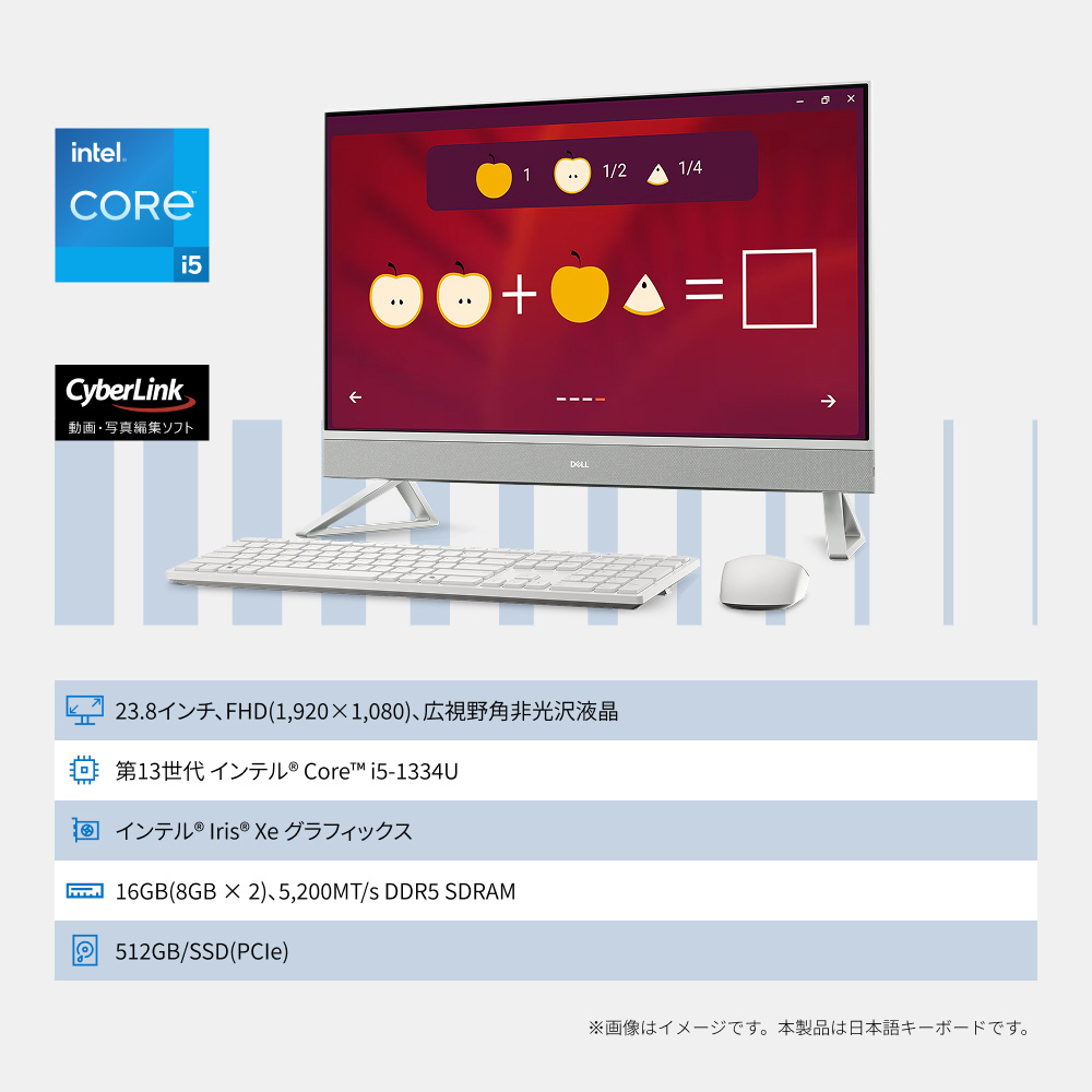 AD47-GHM3WC モニター一体型デスクトップPC Dell 24(EC24250) パールホワイト [23.8型 /Windows11 Home /intel Core i5 /メモリ:16GB /SSD:512GB /M365 (24か月) or Office 選択可能 /2026年春モデル]