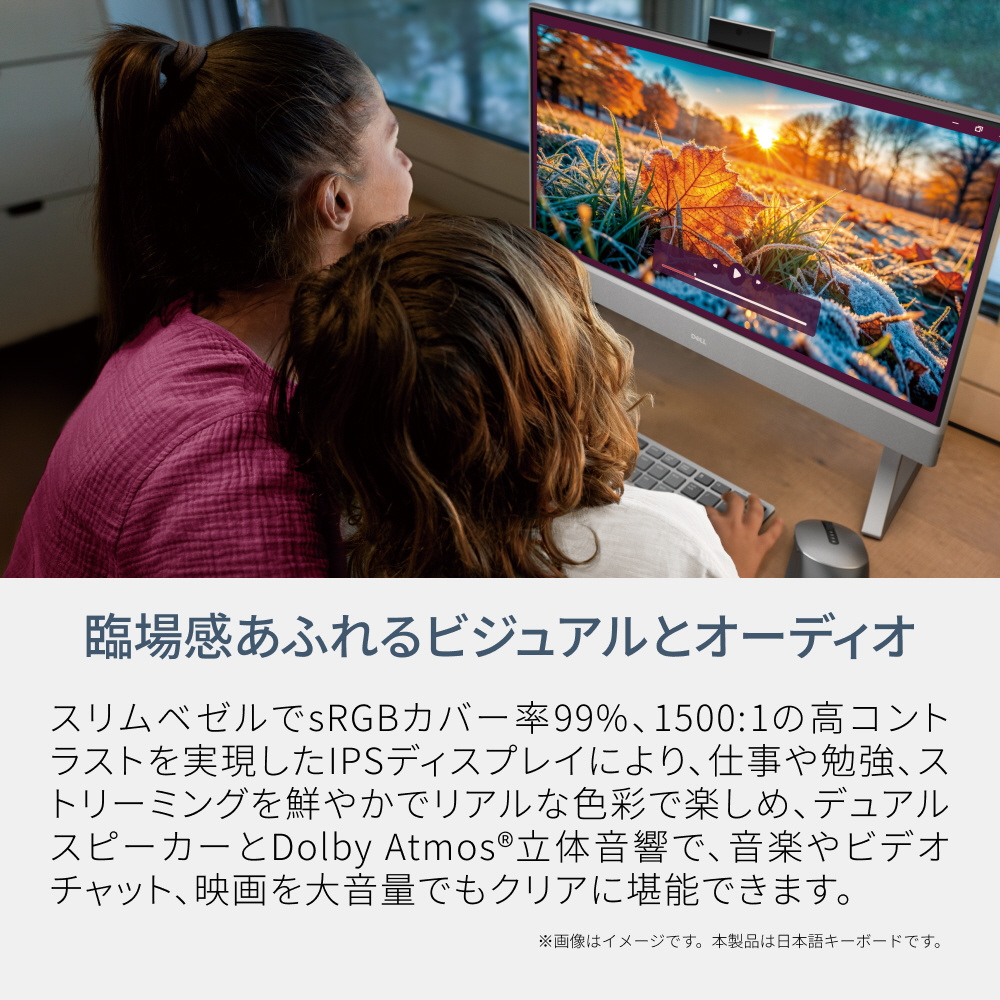 コンパクトでモダンなデザインのフルHD IPSディスプレイ(100Hz)を搭載した24インチ オールインワン。5MP+IRカメラにHDRテクノロジー、Dolby Atmos立体音響を備えたデュアル スピーカー、インテル Core シリーズ プロセッサーを搭載。