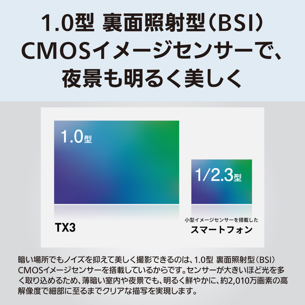 ■1.0型 裏面照射型(BSI)CMOSイメージセンサーで、夜景も明るく美しく