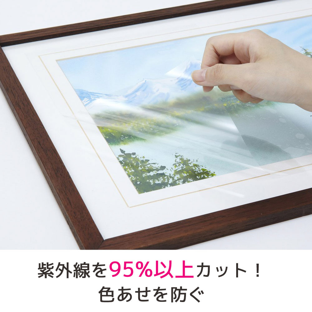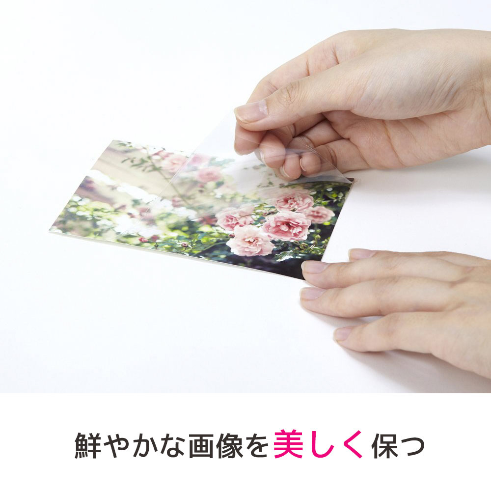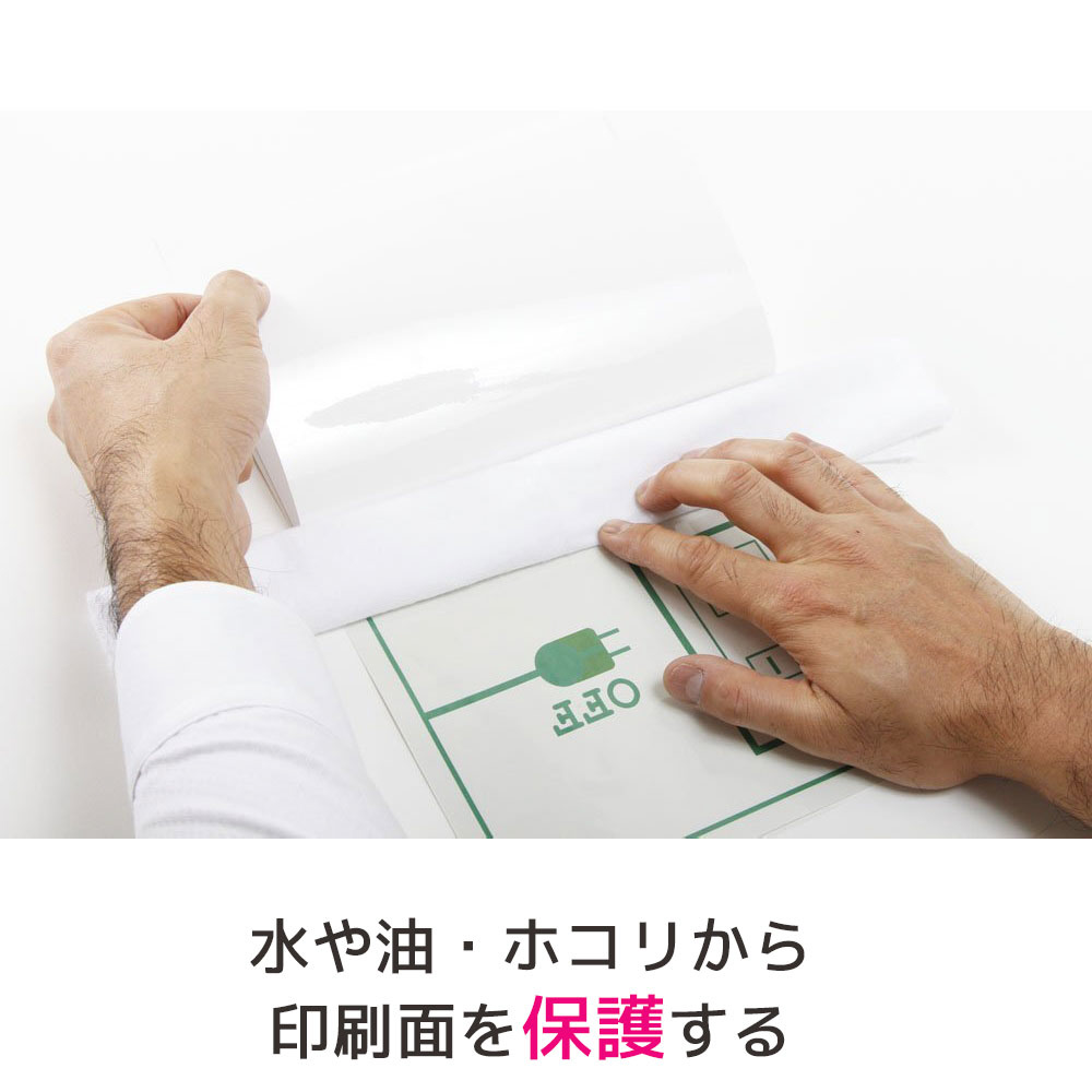 紫外線(UV)95%以上カット!出力画像や印刷物の上から貼るだけで水や油、ホコリをシャットアウト。光沢のある透明フィルムで印刷物をより鮮やかに保ちます。