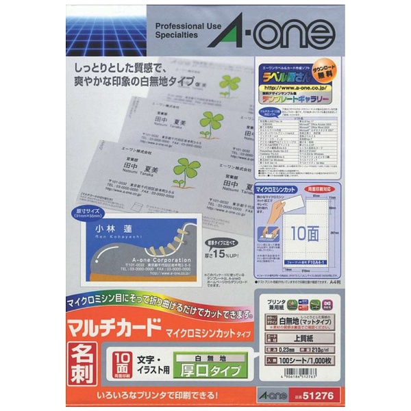 51276 マルチカード 兼用タイプ(白無地 厚口タイプ/A4判/10面/名刺サイズ)