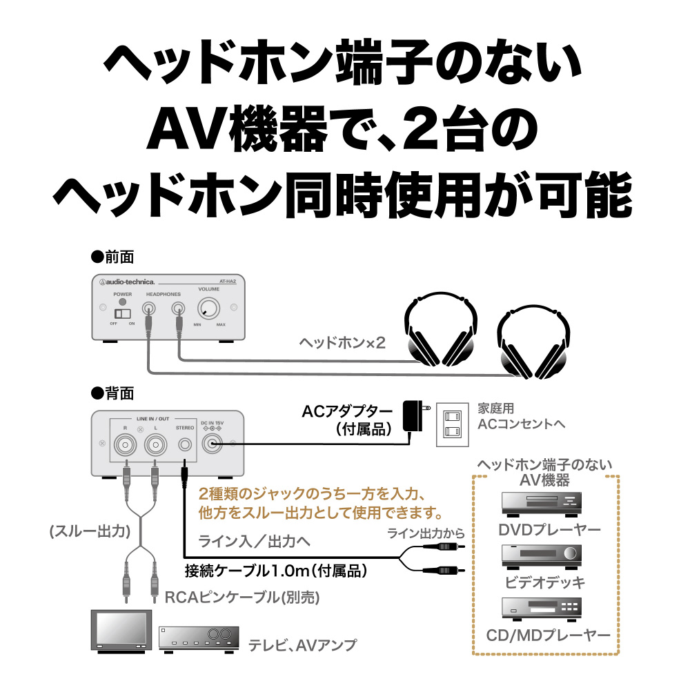 ヘッドホン端子のないAV機器で2台のヘッドホンモニターが可能