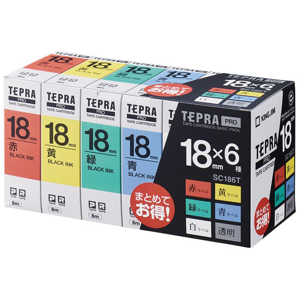 ラベルテープ(ベーシックパック) 「テプラPRO」(6種セット/18mm幅) SC186T