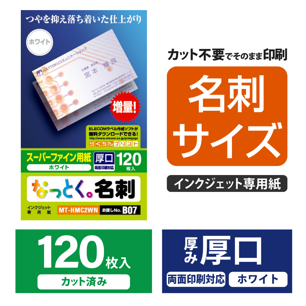 商品名 MT-HMC2WN なっとく名刺(両面マット調タイプ/厚口/120枚/ホワイト)