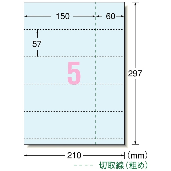 簡単に切り離せるマイクロミシンカットタイプの手作りチケット用紙。ブルー、A4、1シート2列5面、20枚入。