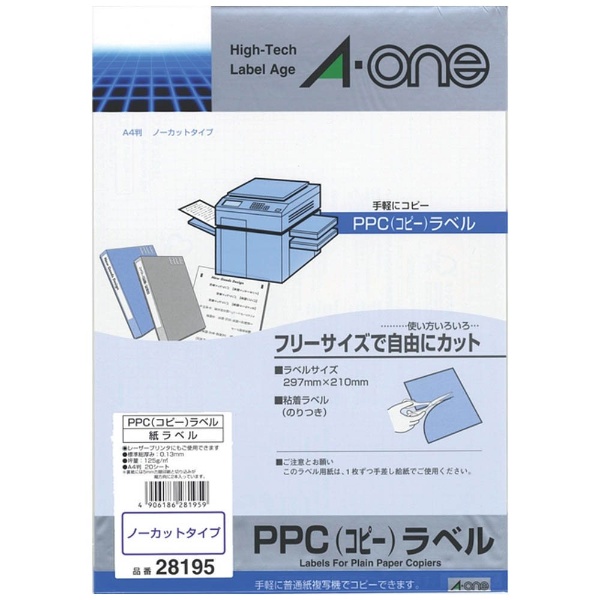 28195(コピーラベル/宛名・表示用/モノクロコピー機用/しっかり貼れるタイプ/A4 /ノーカット/20枚入)