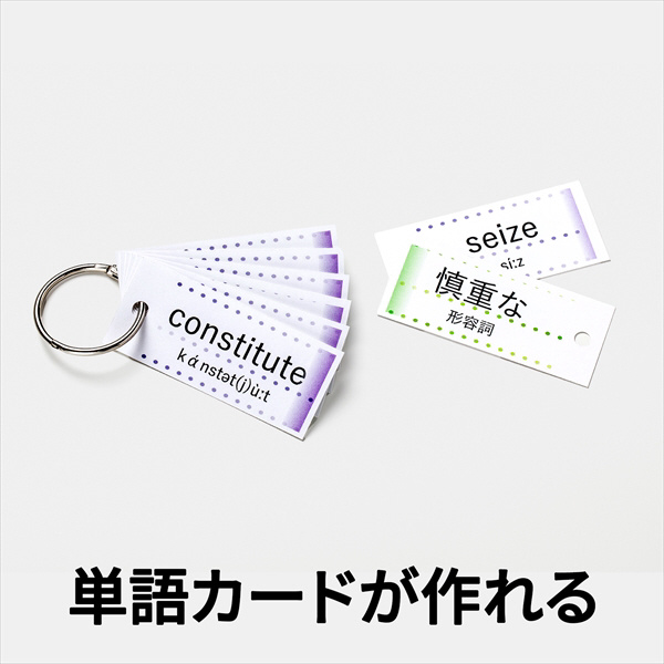 いろいろなプリンタで印刷できる単語帳カードです。ミシン目部分を山折り谷折りするだけで切り離せるマイクロミシンカットタイプです。メッセージカードや値札など、多目的に利用できます。