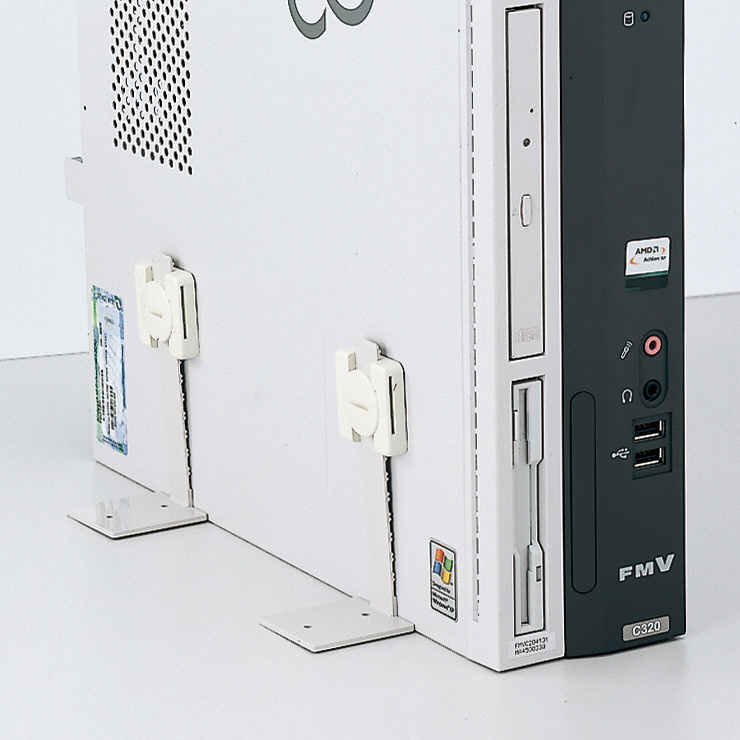 機器の周辺のスペースで固定できるL型耐震ストッパー。耐震度7。対象物重量:80Kg/4本。