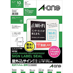 31032 (レーザープリンタラベル 透明フィルム 屋外でも使えるタイプ/A4判/10シート入り)