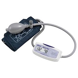 ゴム球による手動加圧。トラベル血圧計。