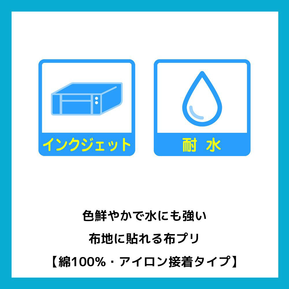 アイロンで簡単に接着できます。選択IK!色が落ちにくい加工を施しています。特殊加工技術により写真もにじまずくっきり鮮やかに印刷できます。