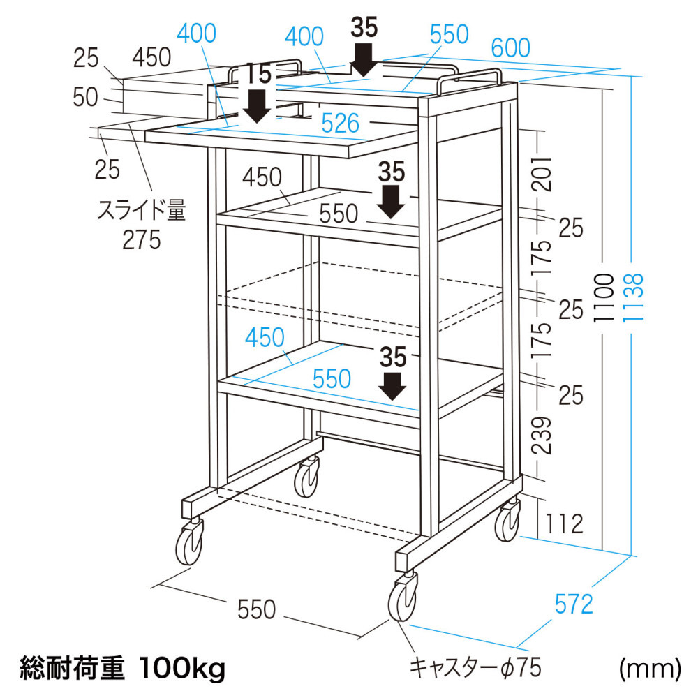 発塵がないステンレス(SUS304)を使用し、クリーンルームに最適。耐熱性に優れ、薬品や錆びに強いハイスタンドラック。