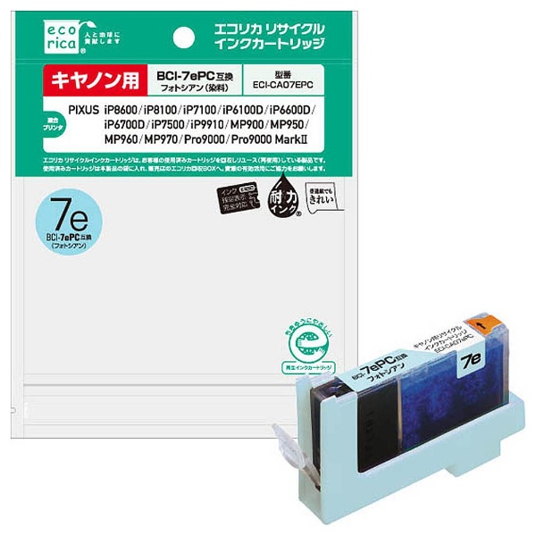 【リサイクル】 ECI-CA07EPC (キヤノン BCI-7ePC対応/リサイクルインクカートリッジ/フォトシアン)