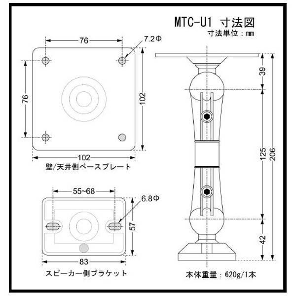 壁・天井用ユニバーサルブラケット(ブラック/1本) MTC-U1
