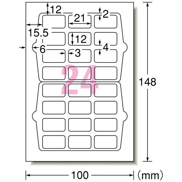 26003 (手書きもプリントもできるラベル 角型24面 21×12mm 12シート(288片)入り)