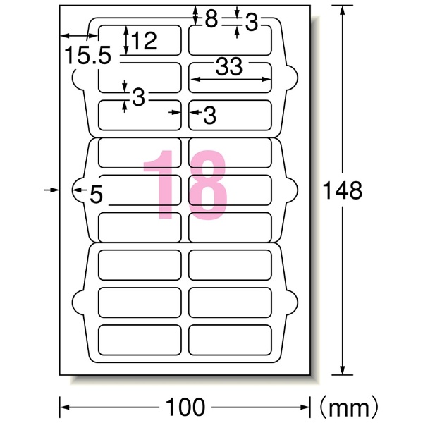 26005 (手書きもプリントもできるラベル 角型18面 33×12mm 12シート(216片)入り)