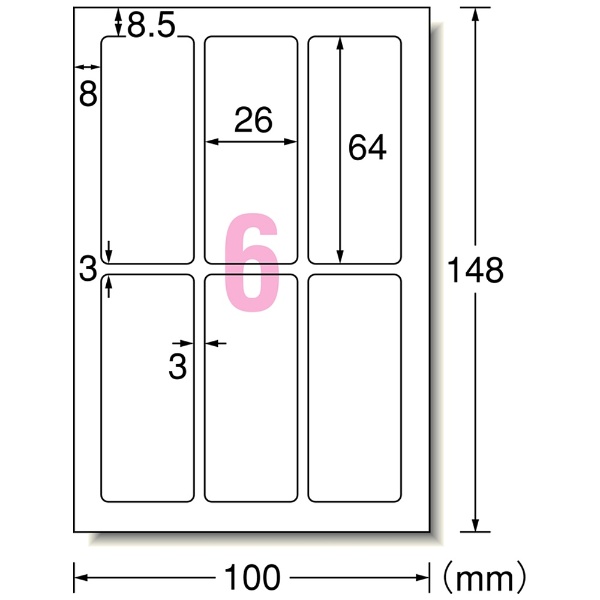 26013 (手書きもプリントもできるラベル 角型6面 26×64mm 12シート(72片)入り)