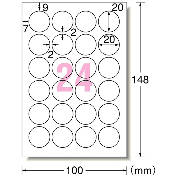 26105 (手書きもプリントもできるラベル 丸型24面 20mmφ 12シート(288片)入り)