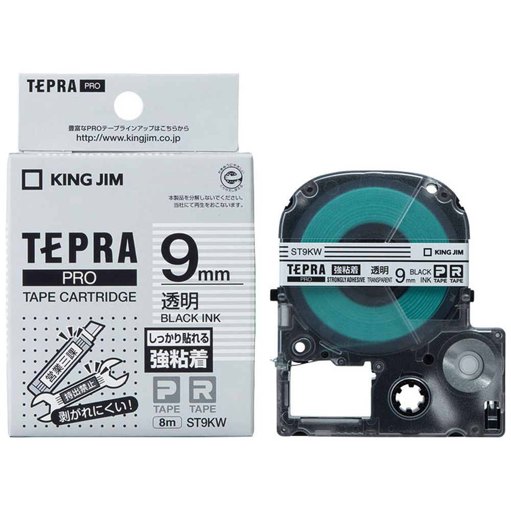 強粘着ラベルテープ 「テプラPRO」(透明テープ/黒文字/9mm幅) ST9KW