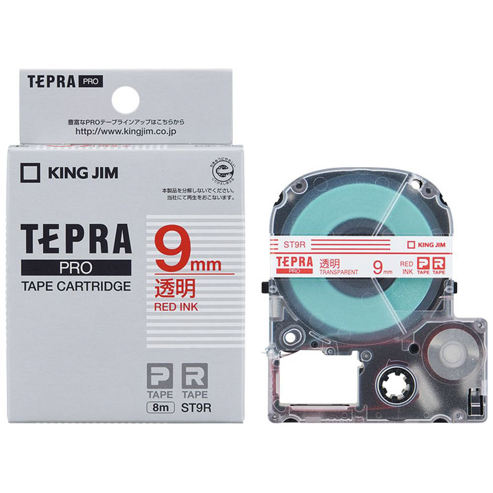 ST-9R (テプラPROテープカートリッジ 透明テープ/赤文字/6mm)