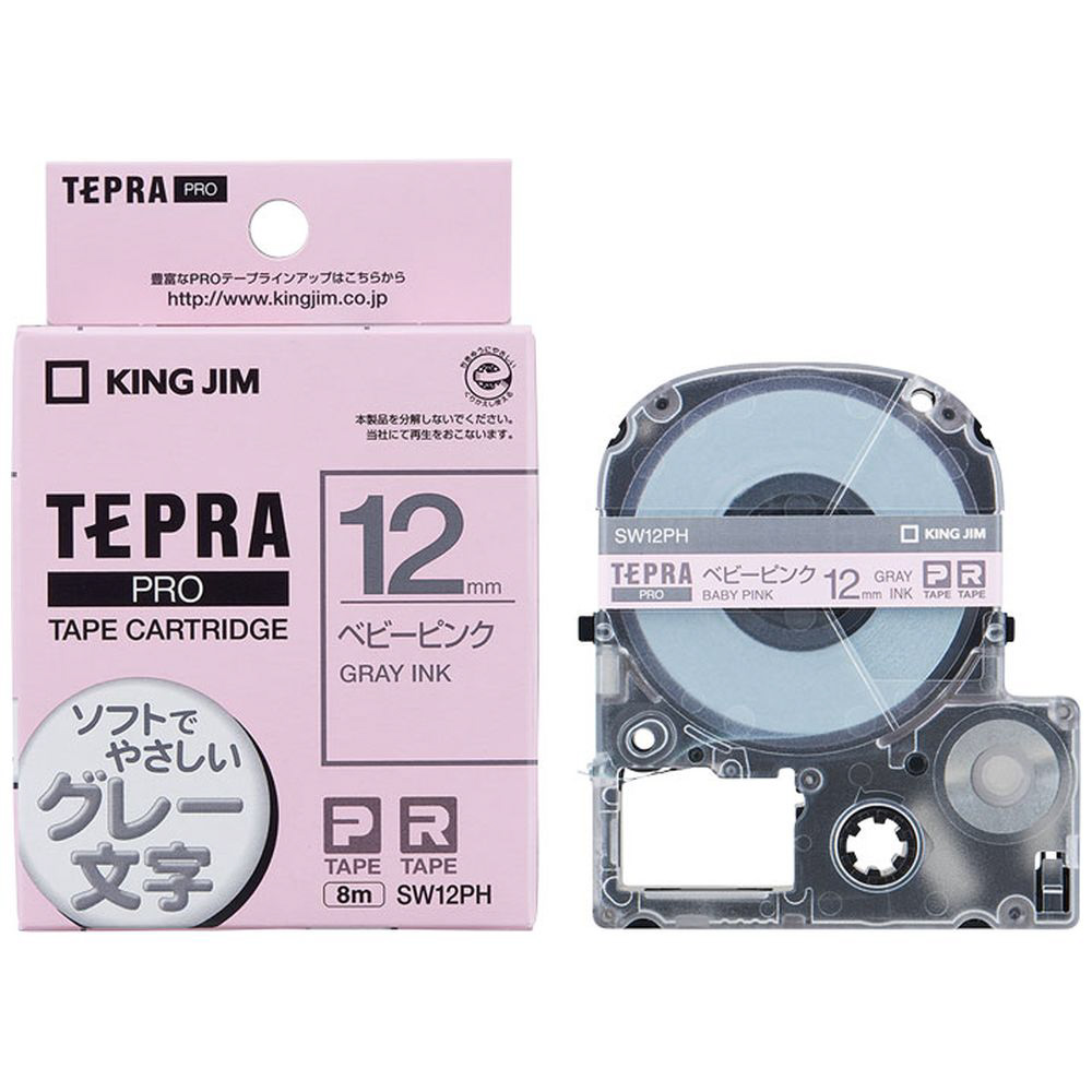 カラーラベルテープ 「テプラPRO」 (ベビーピンクテープ/グレー文字/12mm幅) SW12PH