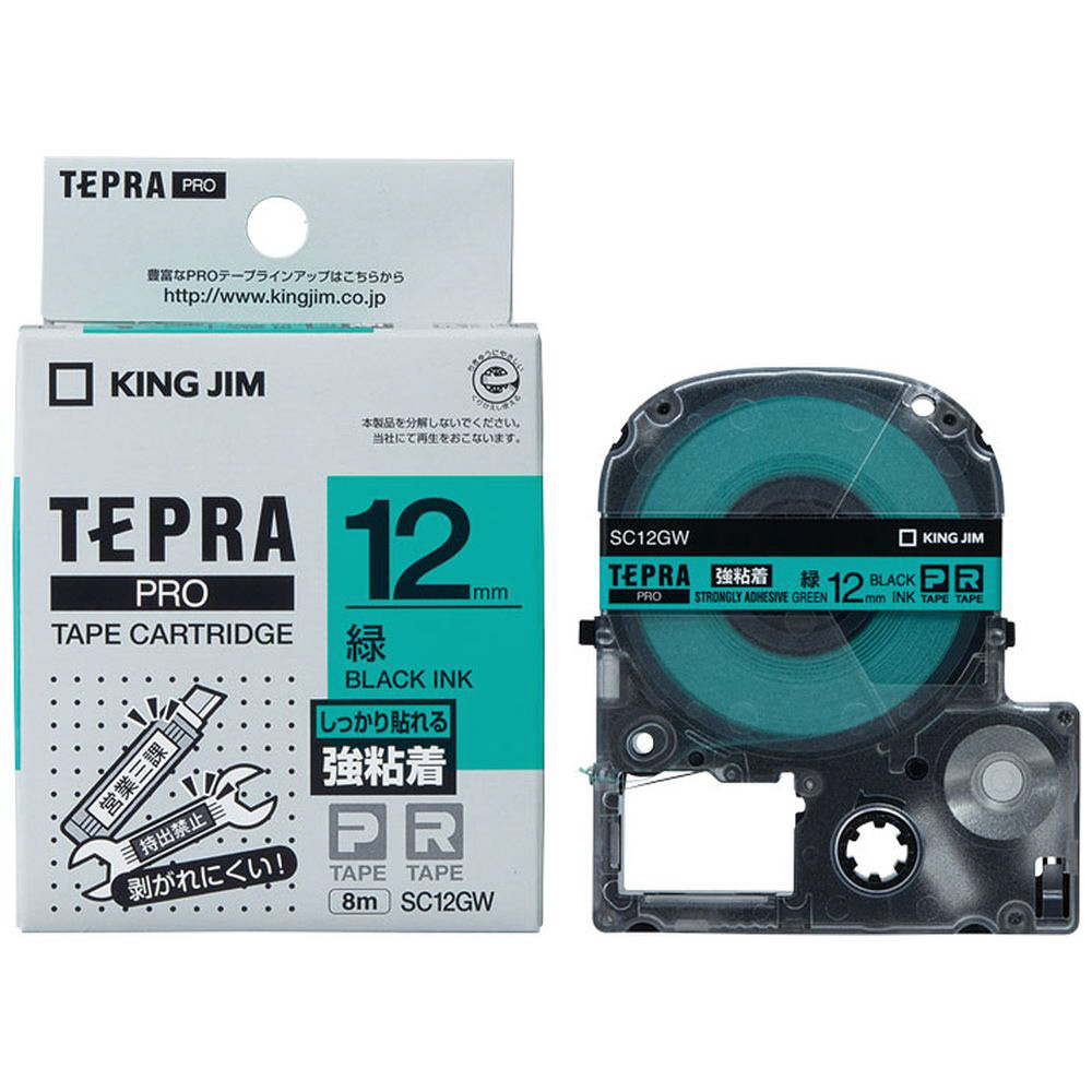 強粘着ラベルテープ 「テプラPRO」(緑テープ/黒文字/12mm幅) SC12GW