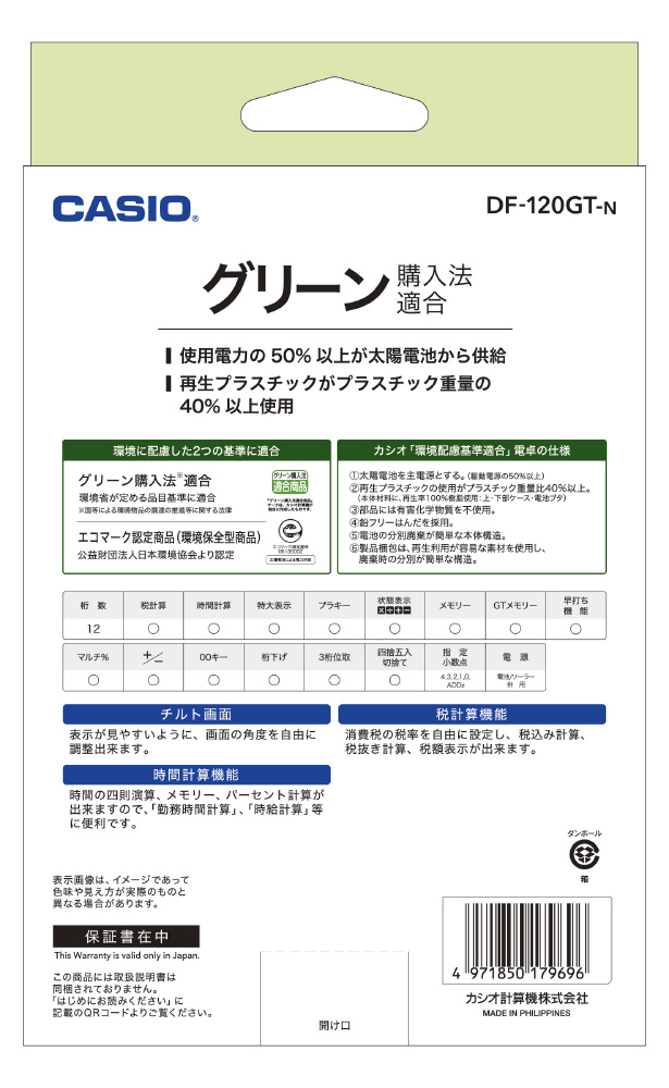 「エコマーク商品」認定に加えて、「グリーン購入法」の品目判断基準にも適合した電卓