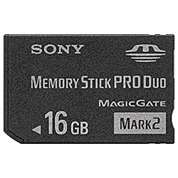 高精細画像や高画質動画など容量の大きなデータを記録できる16GBのメモリースティックPROデュオ。より高画質に、より長時間の記録が可能になりました。また、著作権保護技術「マジックゲート」に対応。