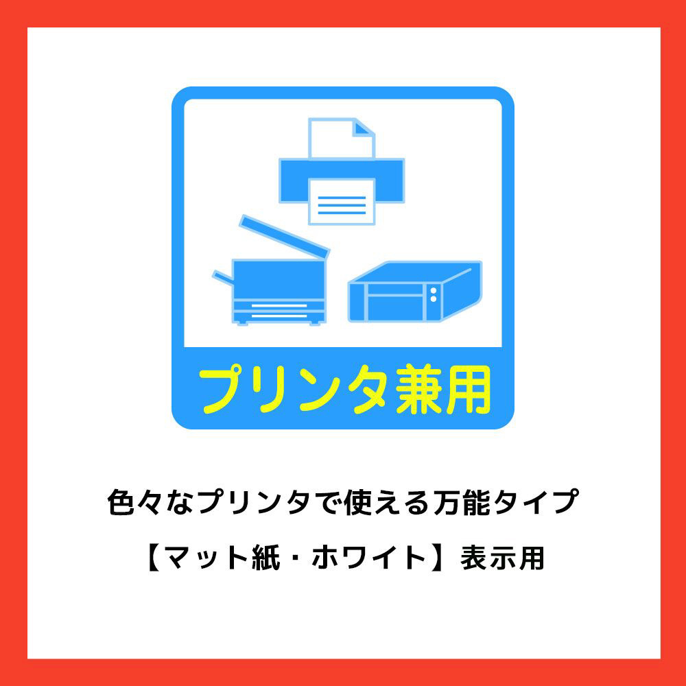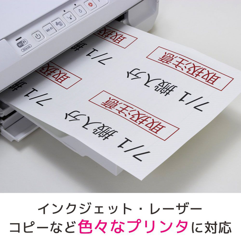 対応プリンタ インクジェットプリンタ(染料系インク・顔料系インクに対応)、カラーレーザー・モノクロレーザー、カラーコピー機、熱転写(カラーレーザー・モノクロレーザーに対応)、ドットインパクトプリンタ、手書き