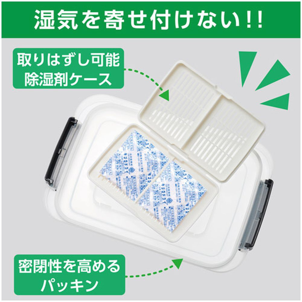密閉できる手軽な保管庫です。フタ部分に乾燥剤が付いていますので定期的に交換すれば長期間使用可能です。