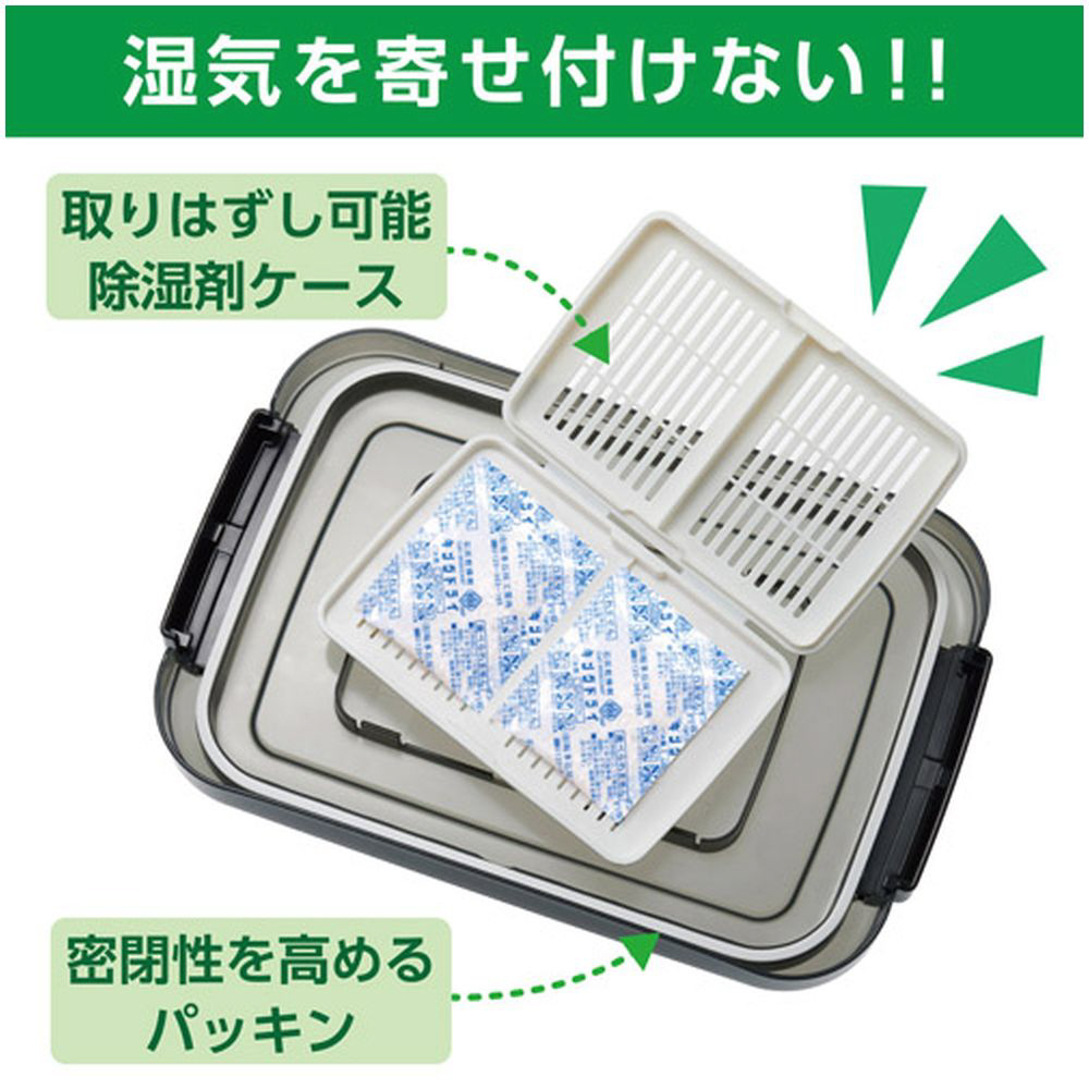 密閉できる手軽な保管庫です。フタ部分に乾燥剤が付いていますので定期的に交換すれば長期間使用可能です。