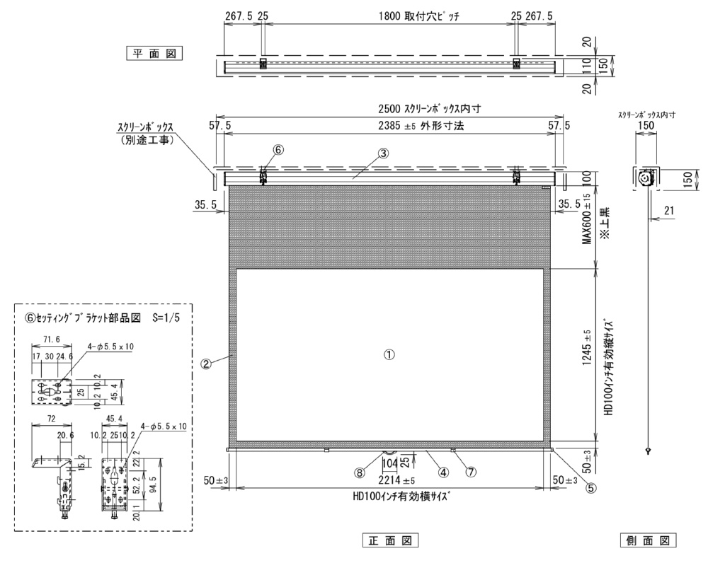 | スクリーンサイズ(収納時) | 115×110×2385mm |