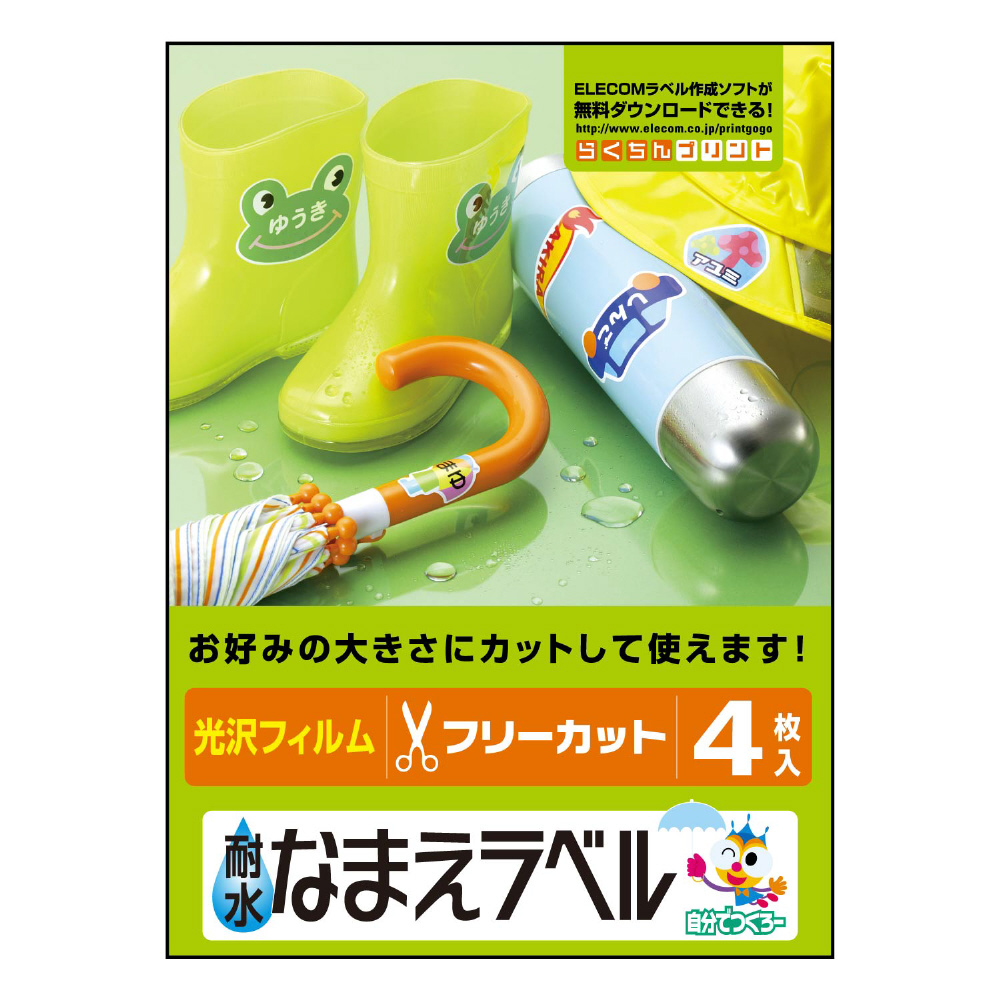 水にぬれても大丈夫!手軽でキレイに手作りできる” 耐水なまえラベル” 。お好みのサイズにカットできるフリーカットタイプ。