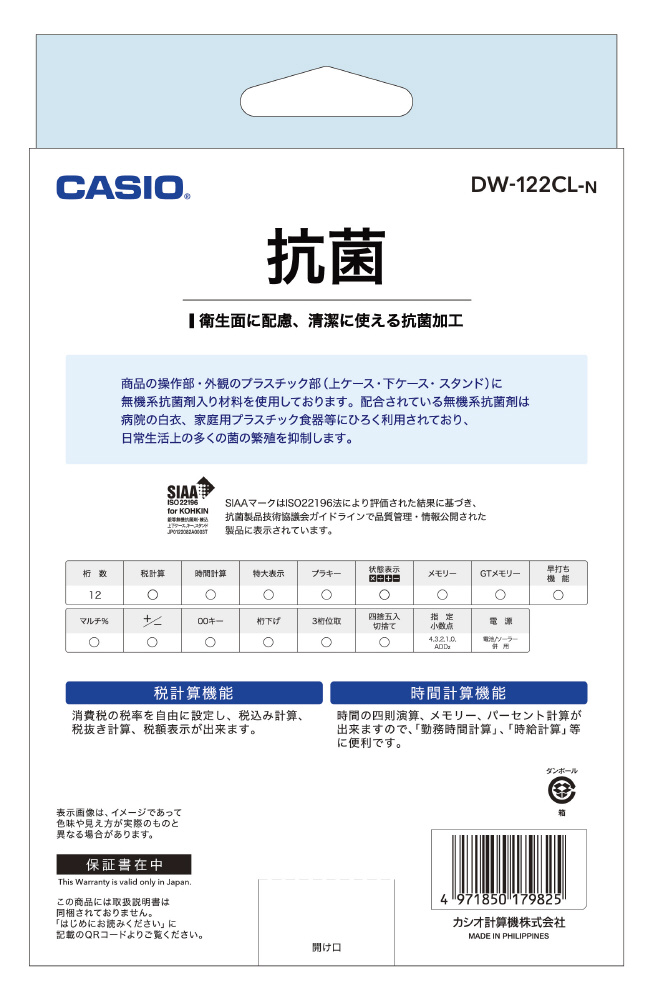 抗菌電卓 (12桁) DW-122CL-N