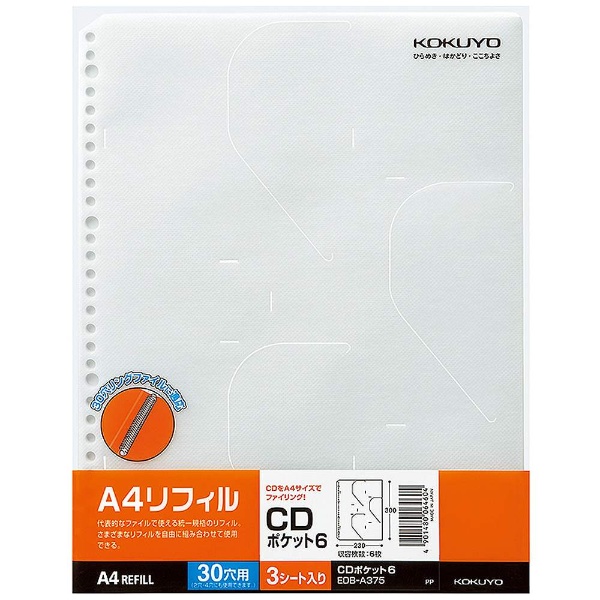 EDB-A375 (CDポケット6A4リフィル/縦30穴/6枚収容/3枚入) 【864】