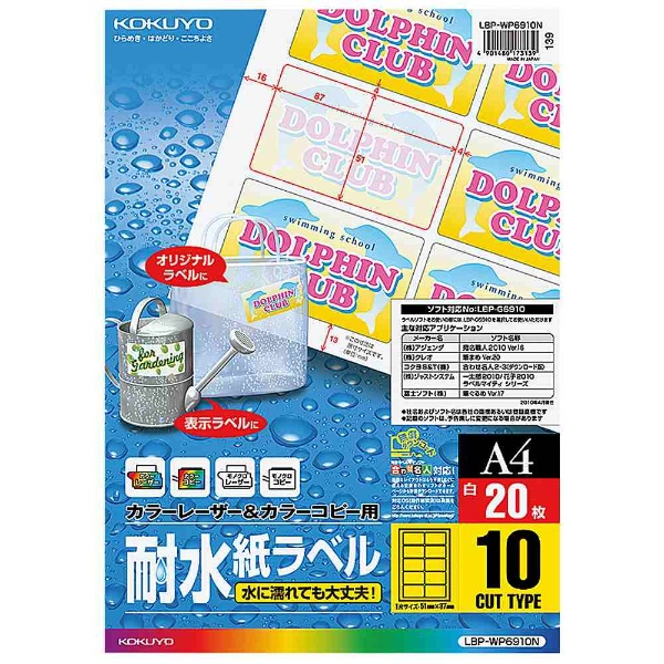 LBP-WP6910 (カラーレーザー&カラーコピー用/耐水紙ラベル/A4サイズ/10面/20枚)