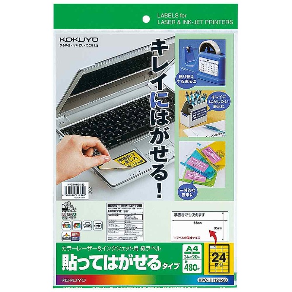 | 商品名 | カラーレーザー&インクジェット用 紙ラベル 貼ってはがせるタイプ (A4 24面・20シート) KPC-HH124-20 |