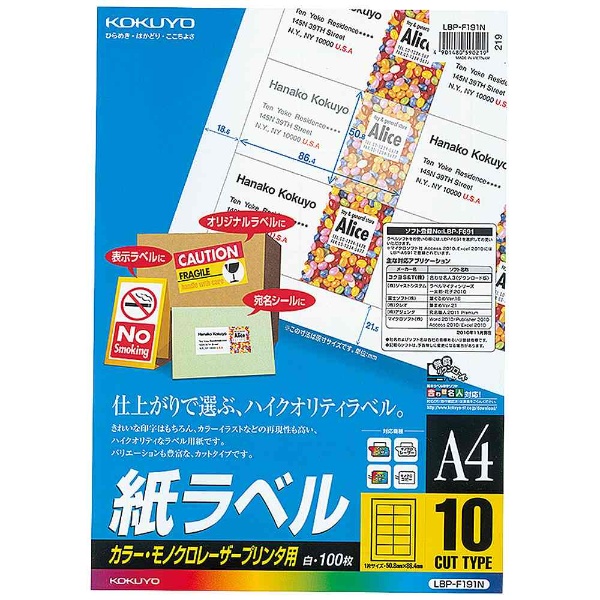 カラーレーザー&コピー用 紙ラベル (A4サイズ・10面・100枚) LBP-F191N