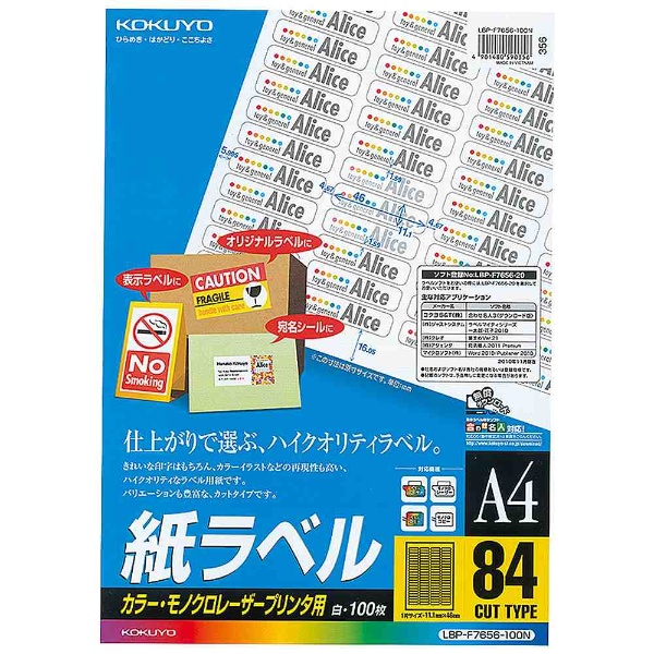 カラーレーザーコピー用紙ラベル (A4サイズ・84面・100枚) LBP-F7656-100
